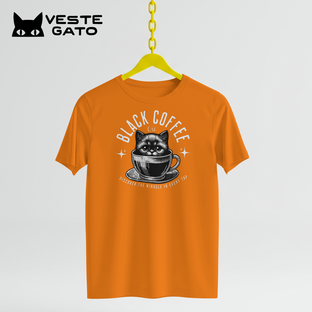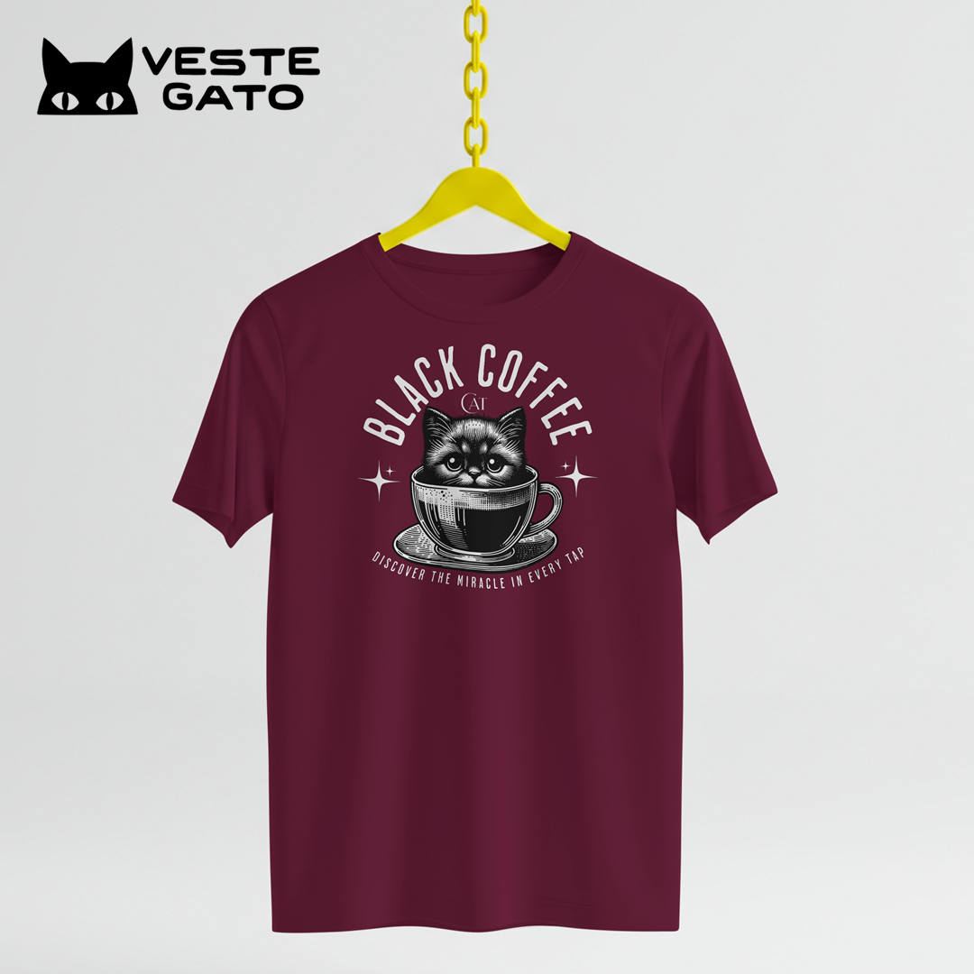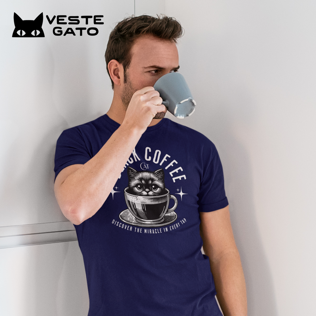 Café forte, gato preto e estilo minimalista — combinação perfeita.☕