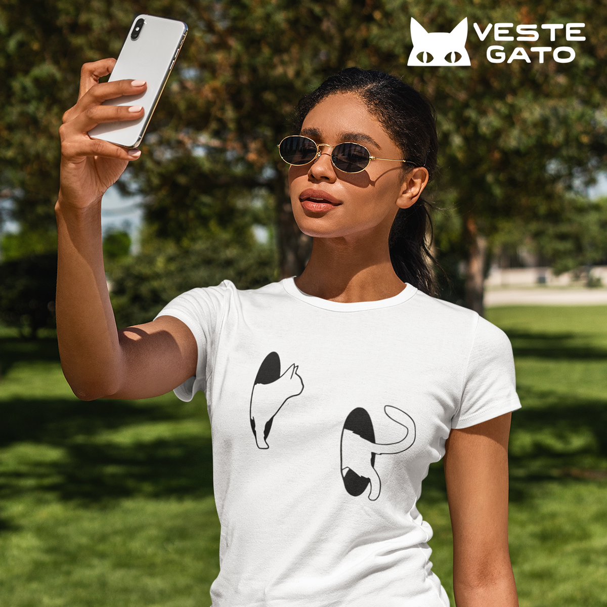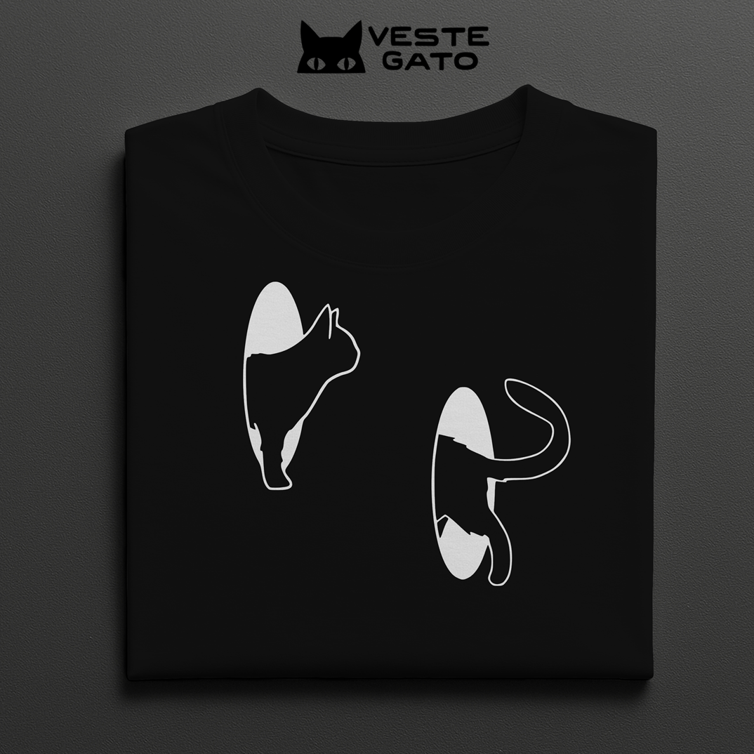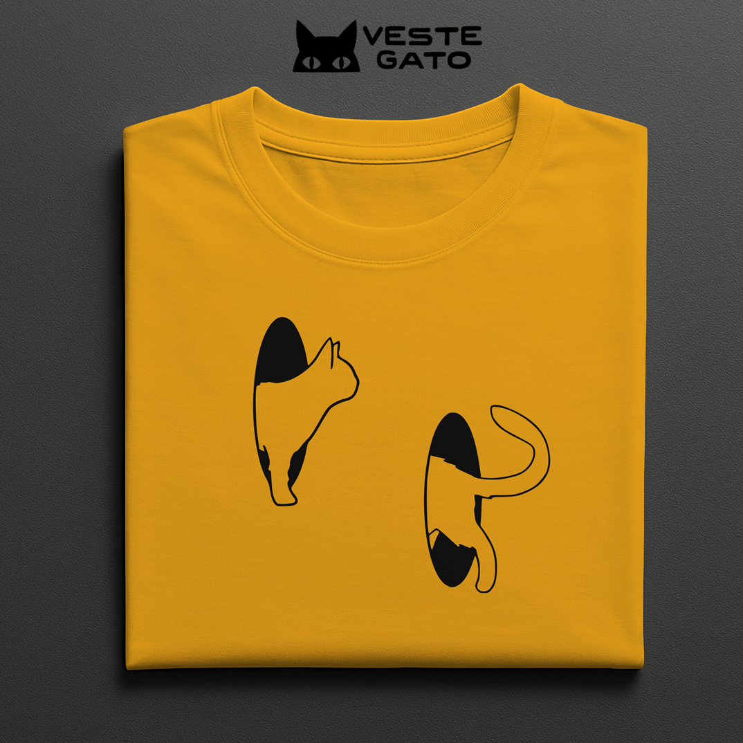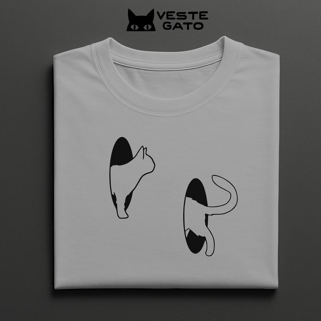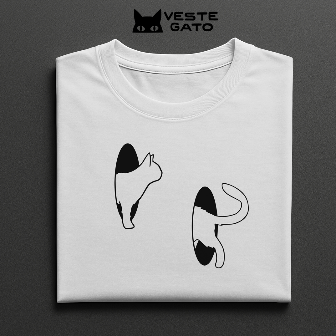 Um gato entrando por um buraco e saindo por outro — pura diversão visual.