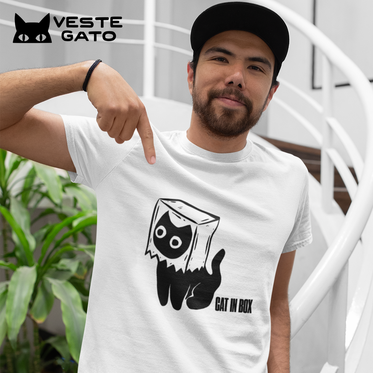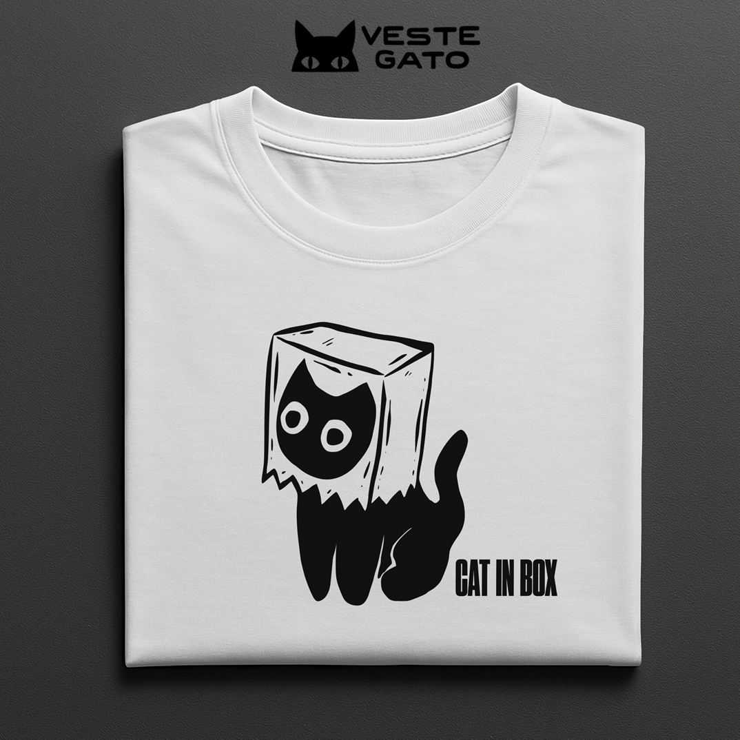 Gato com uma sacola de mercado na cabeça — humor e fofura.
