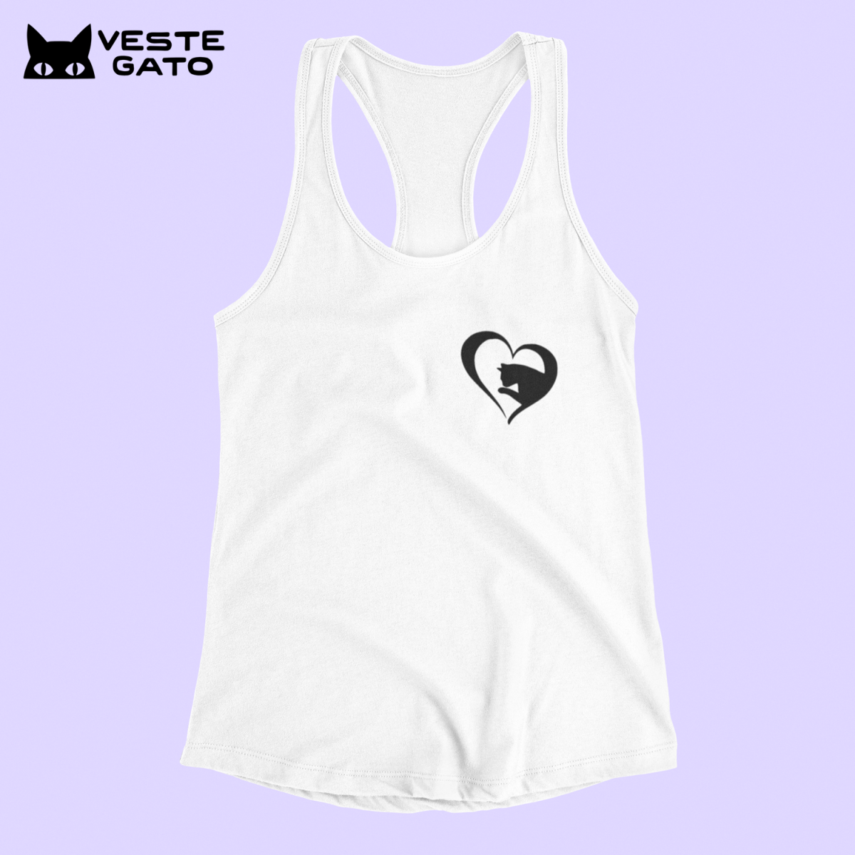 Gato dentro de um coração lambendo a pata — pura ternura.
