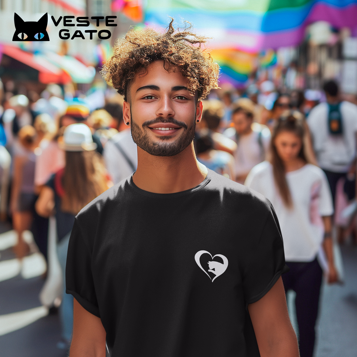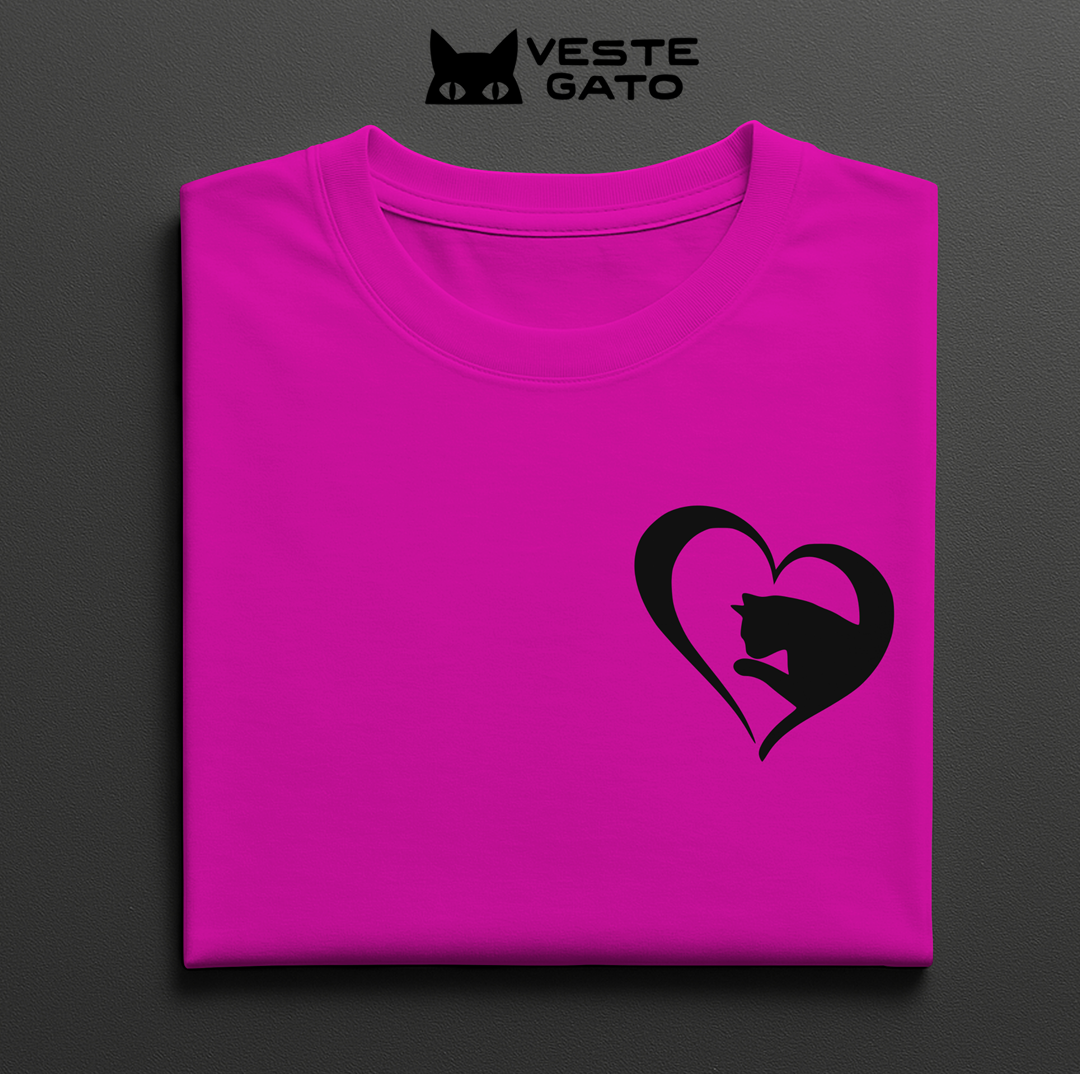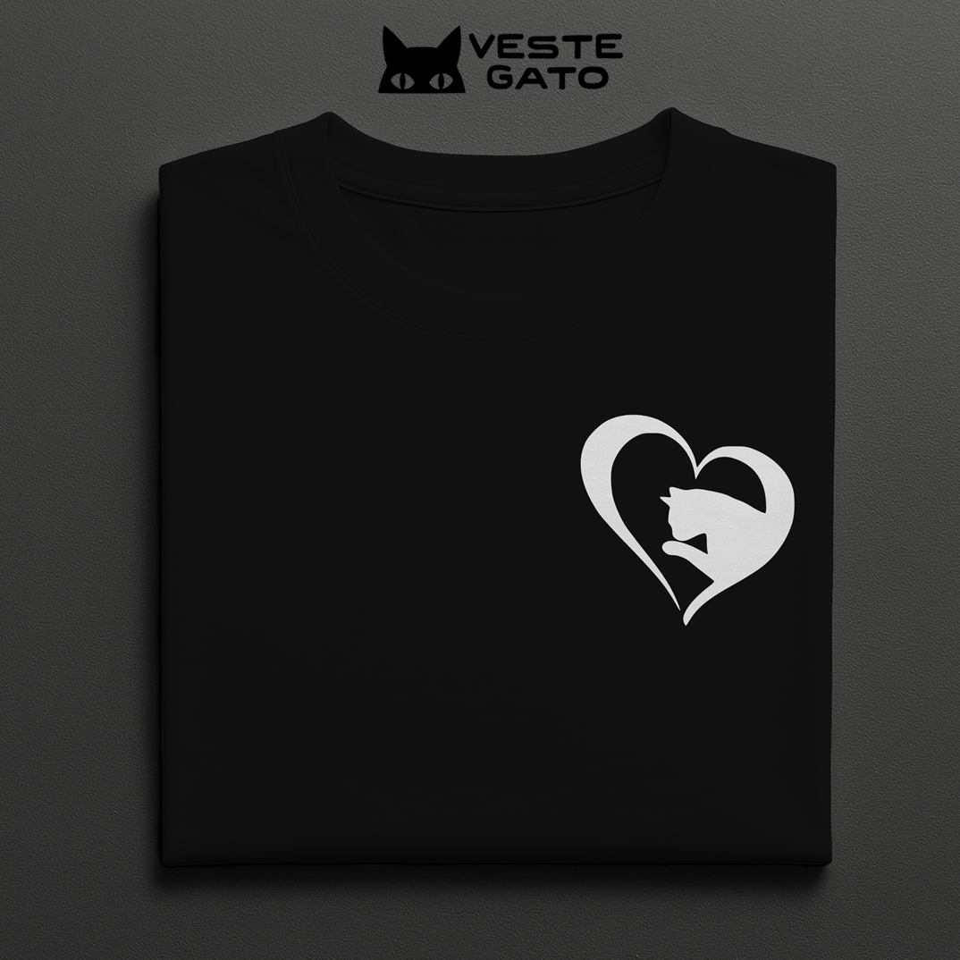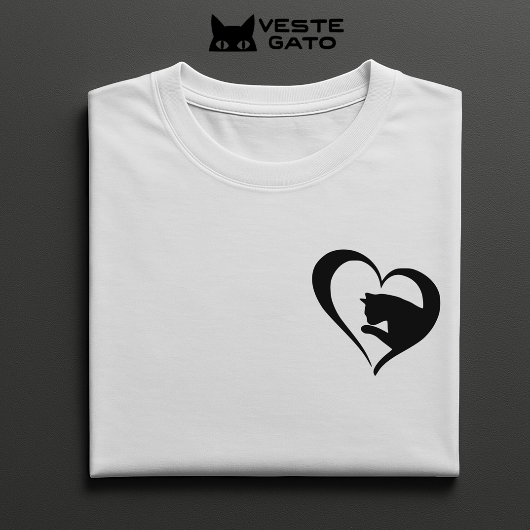 Gato dentro de um coração lambendo a pata — pura ternura.