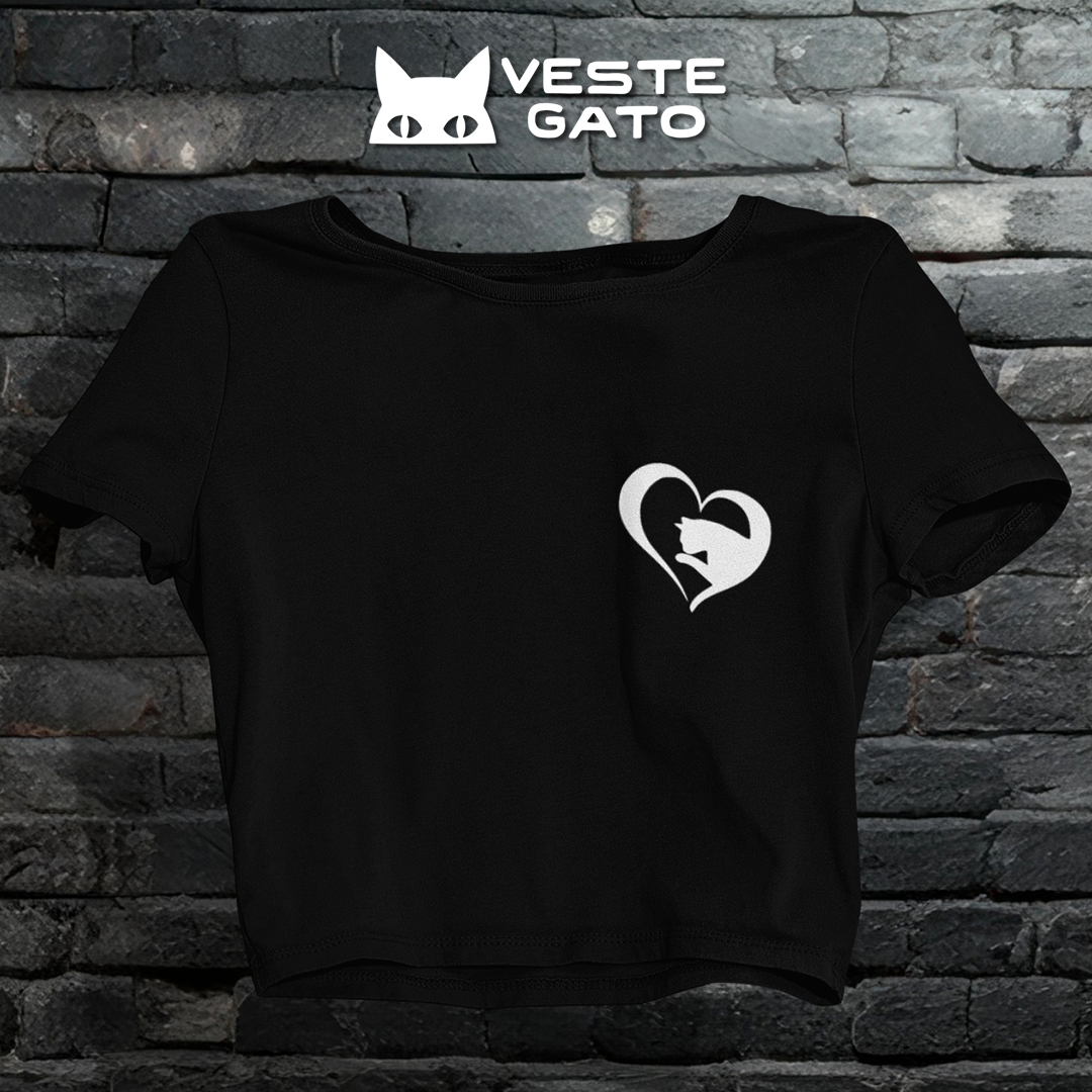 Gato dentro de um coração lambendo a pata — pura ternura.