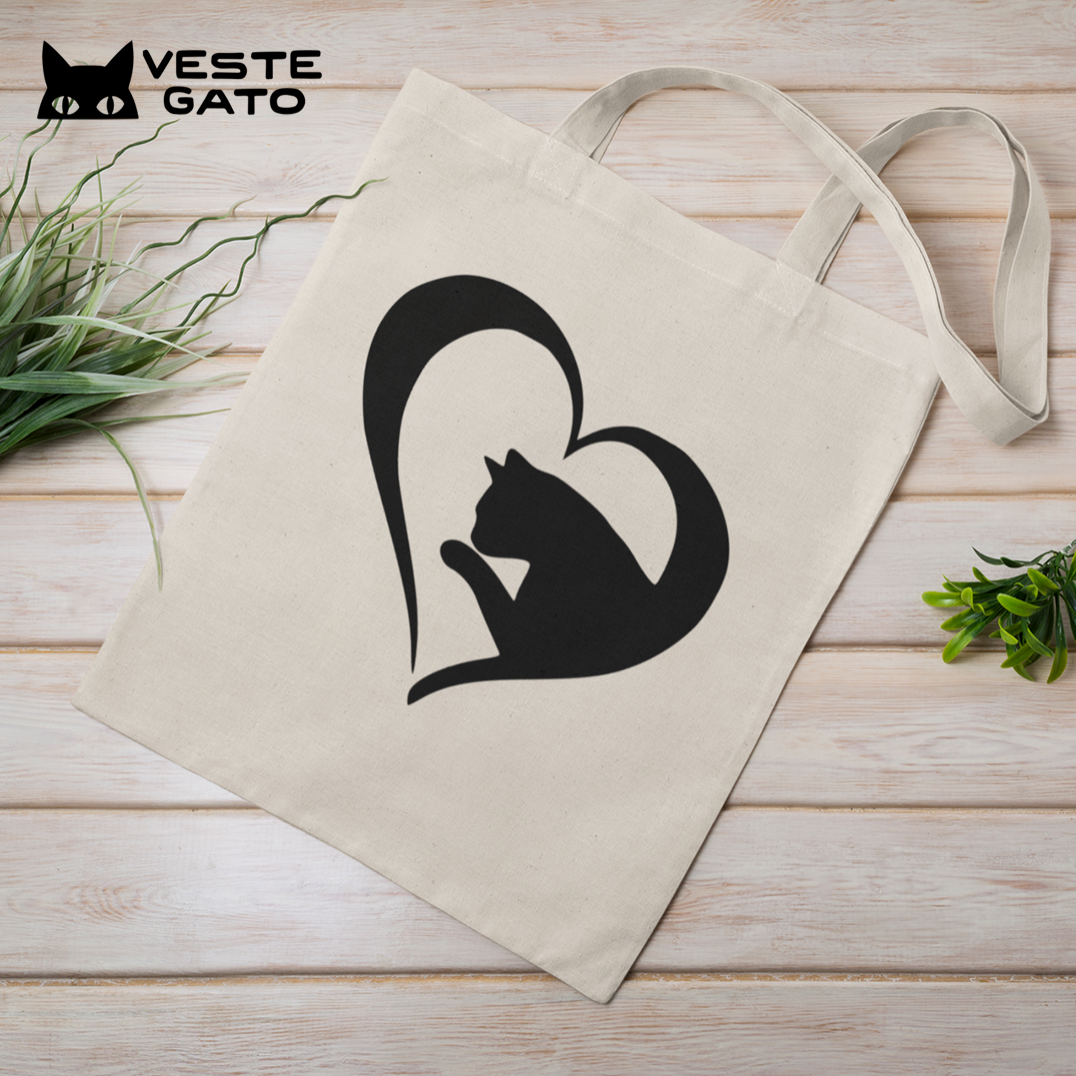 Gato dentro de um coração lambendo a pata — pura ternura.
