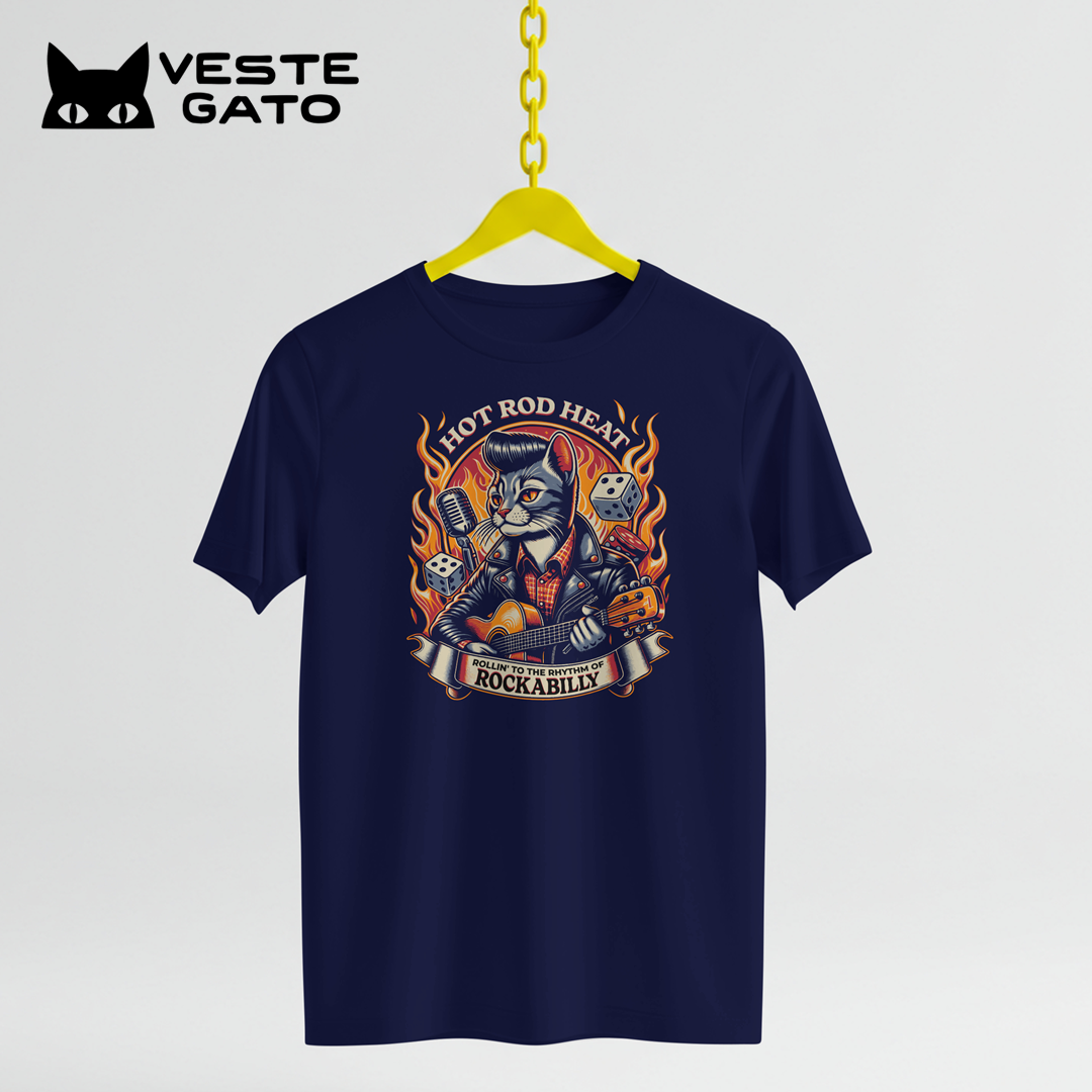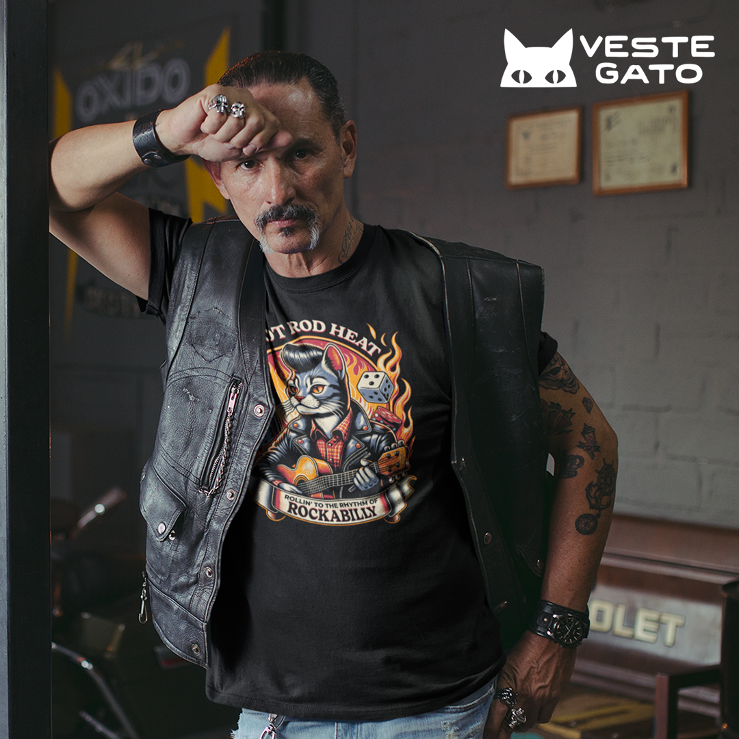 Um gato cheio de adrenalina, pilotando o estilo retrô nas ruas da moda.