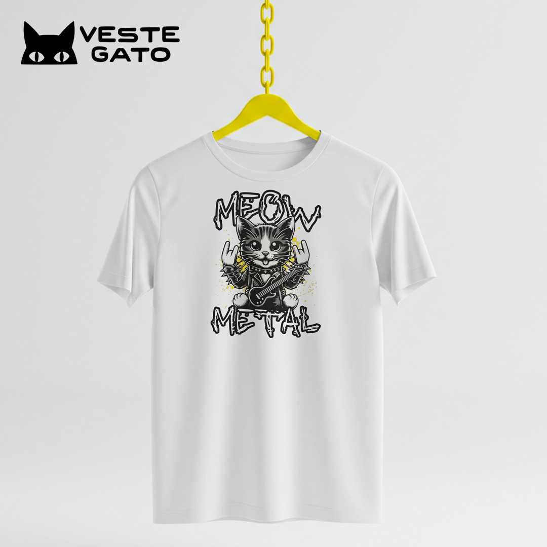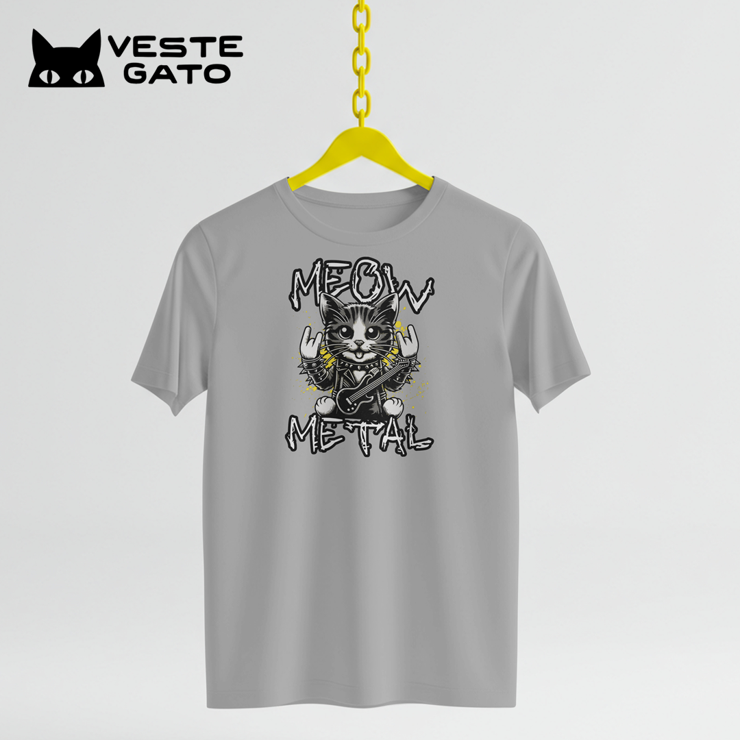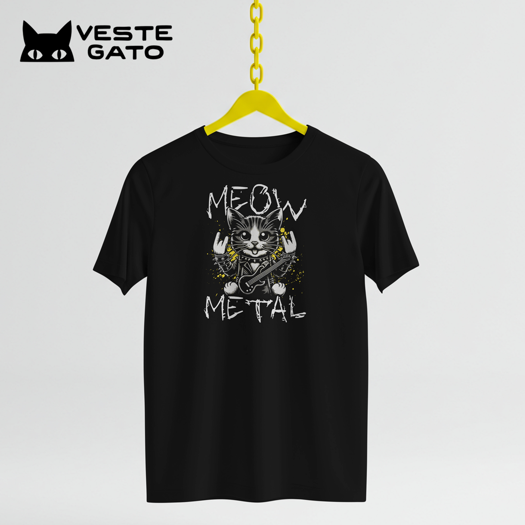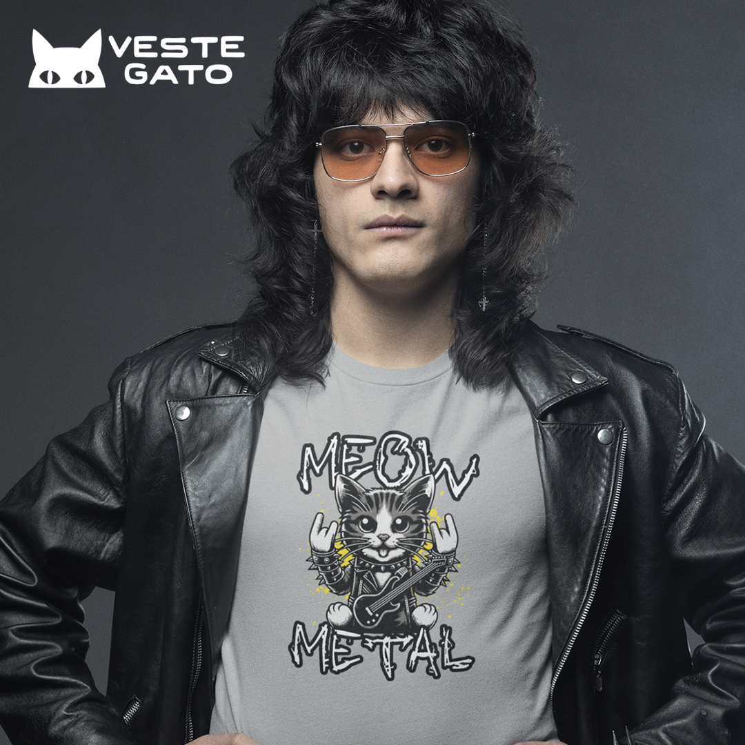 Gatos e metal combinam? Claro! Estampa perfeita para os fãs do ronrom pesado.